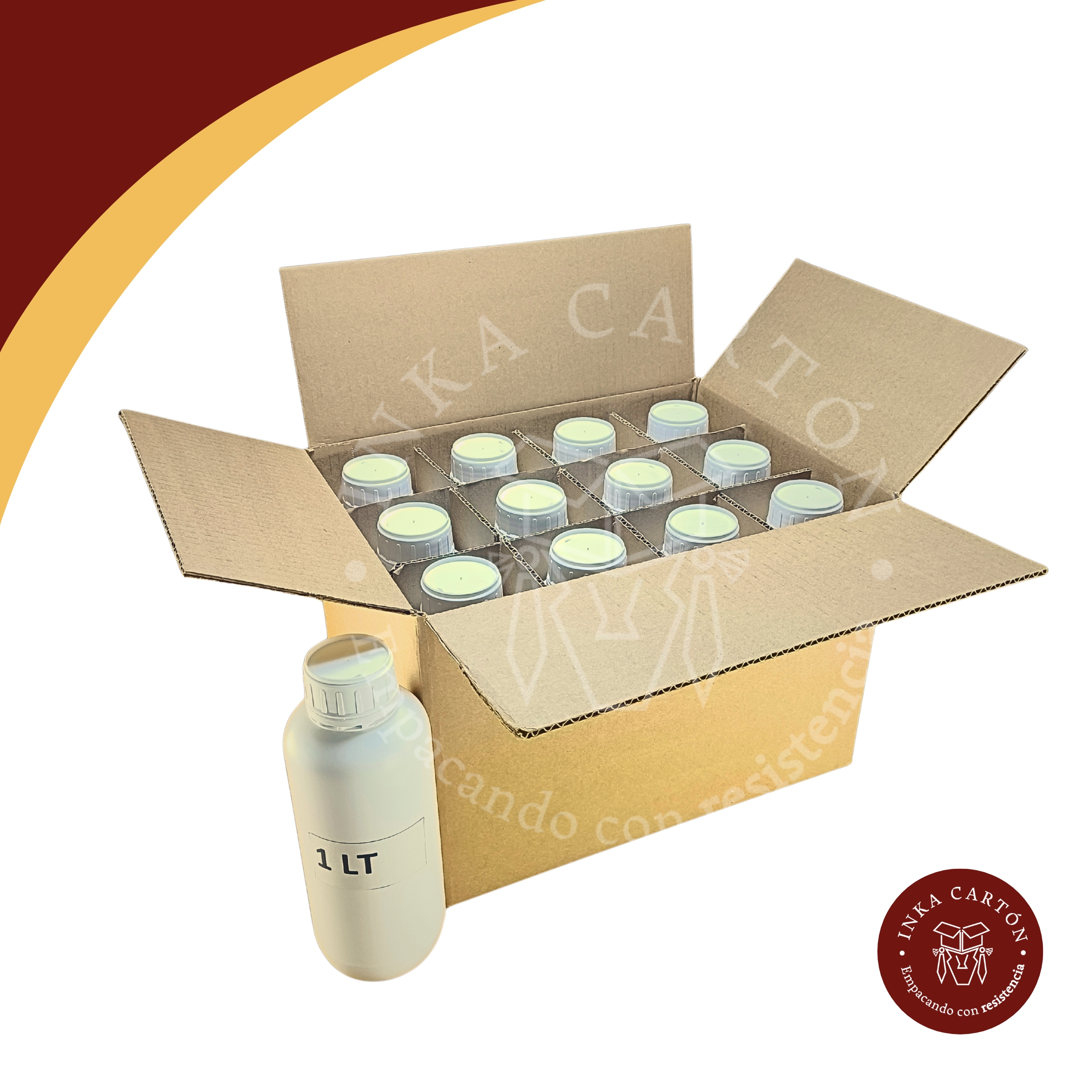 - ▸ Cajas para 12 frascos de 1 litro
